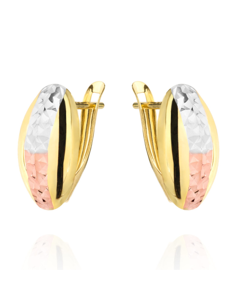Kolczyki złote owal diamentowany trzy kolory złota (Gramatura: 1.78)