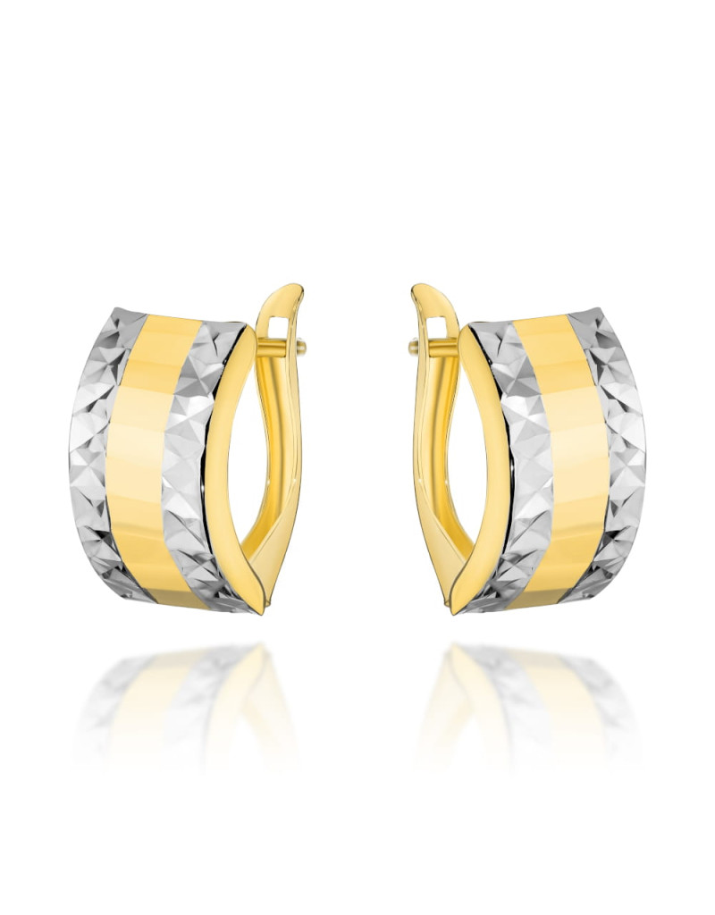 Kolczyki złote szerokie z diamentowaniem w dwóch kolorach złota (Gramatura: 1.87)