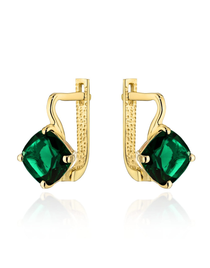 Kolczyki złote z kolekcji "COLORFUL STONE" z eleganckim zapięciem - zielony kwarc kwadrat (Gramatura: 3.60)