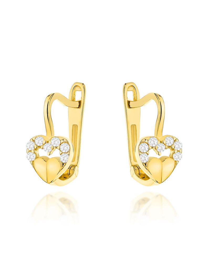 Kolczyki złote serduszko w sercu z cyrkonii na angielskim zapięciu (Gramatura: 1.17)