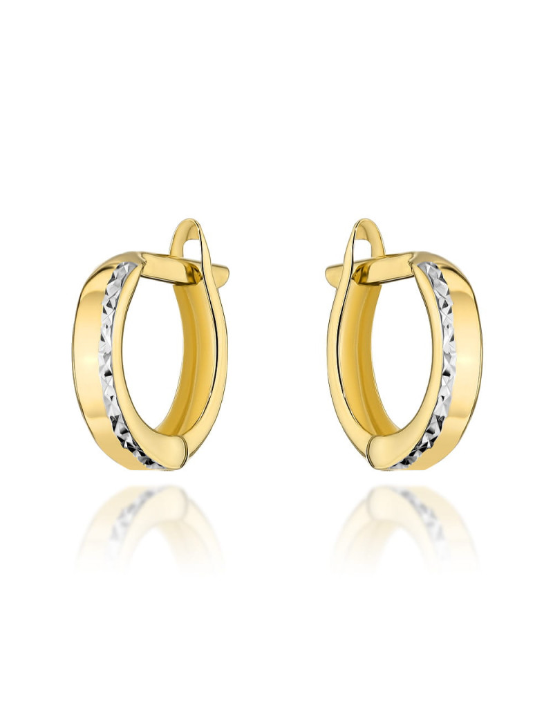 Kolczyki złote małe z diamentowanym paskiem w białym złocie (Gramatura: 0.92)