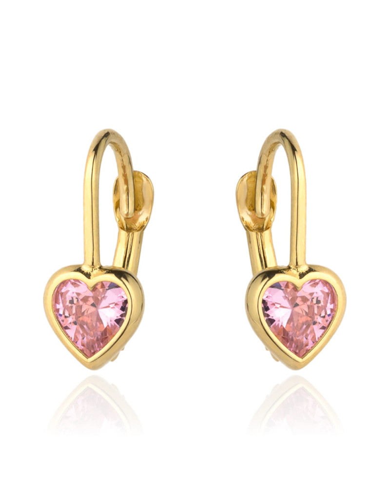 Kolczyki złoty kontur serca i różowy kamień (Gramatura: 1.40)