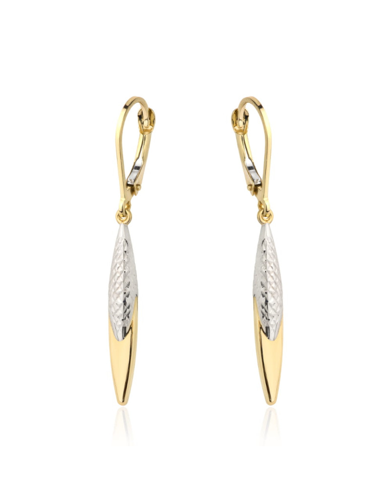 Kolczyki złota łezka zdobiona białym złotem to elegancka biżuteria, która doda blasku każdej stylizacji. Wykonane z wysokiej jakości złota próby 585, te kolczyki łączą w sobie klasyczny design z nowoczesnym wykończeniem.