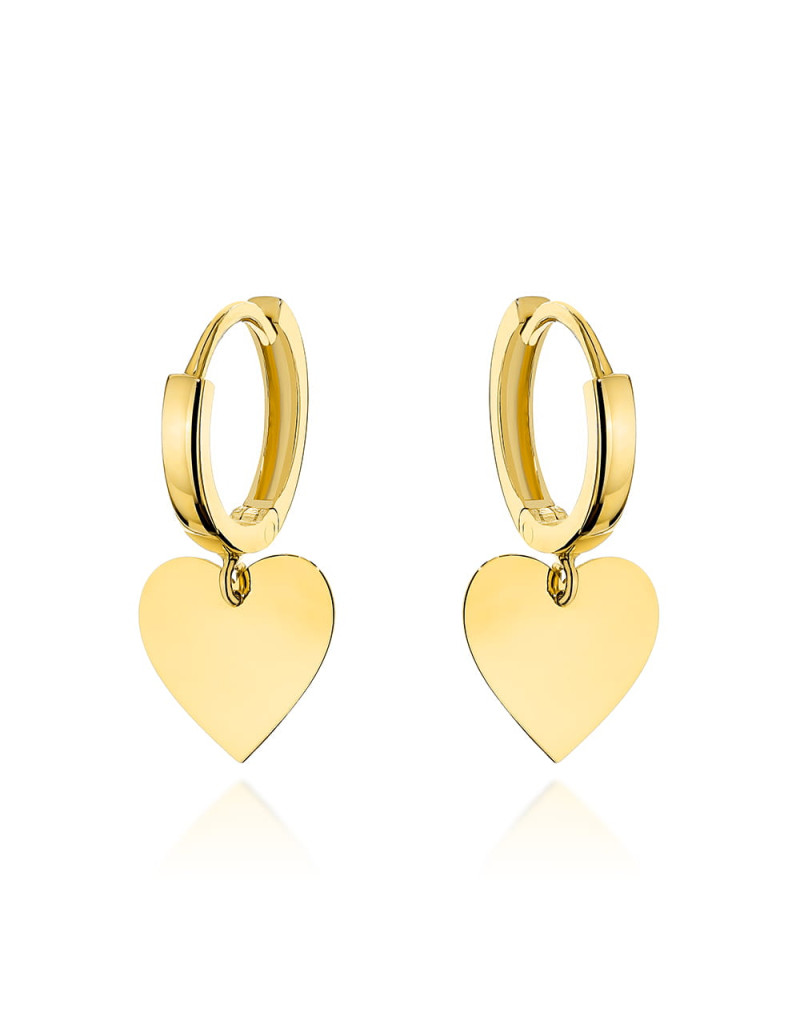 Kolczyki złote kółeczka z wiszącym sercem (Gramatura: 1.57)