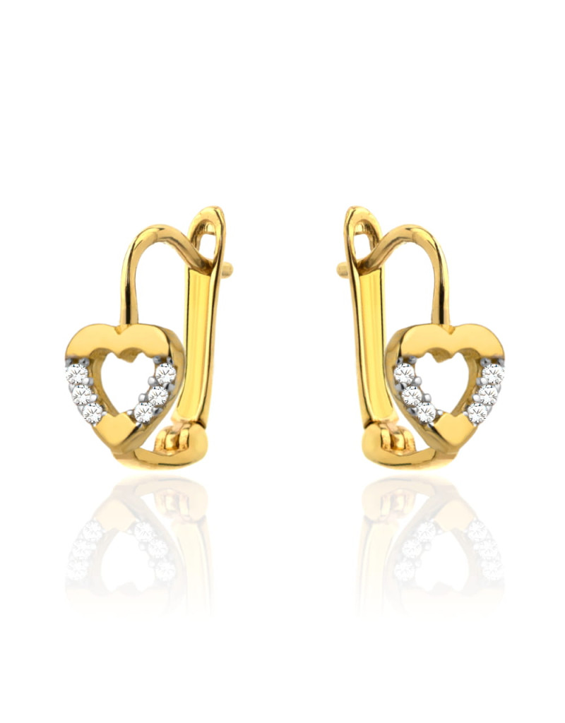 Kolczyki złote serce i cyrkonie po bokach (Gramatura: 1.10)