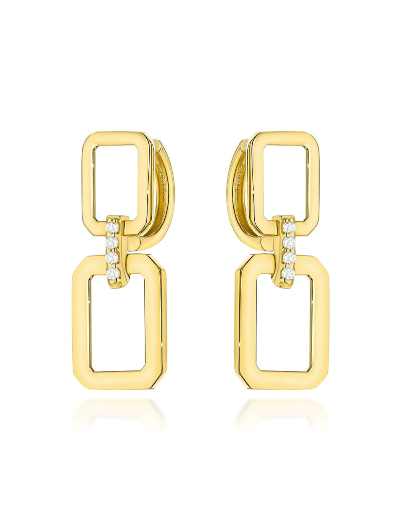 Nie czekaj! Dodaj blasku swoim stylizacjom z naszymi złotymi kolczykami prostokątami z cyrkoniami na kreolu!