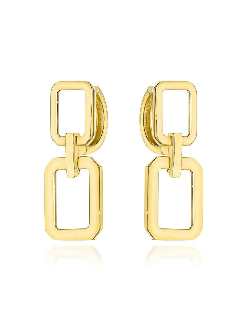 Kolczyki złote prostokąty na kreolu to elegancka biżuteria, która doda blasku każdej stylizacji. Wykonane z wysokiej jakości złota próby 585, te wyjątkowe kolczyki łączą w sobie nowoczesny design z klasycznym stylem.