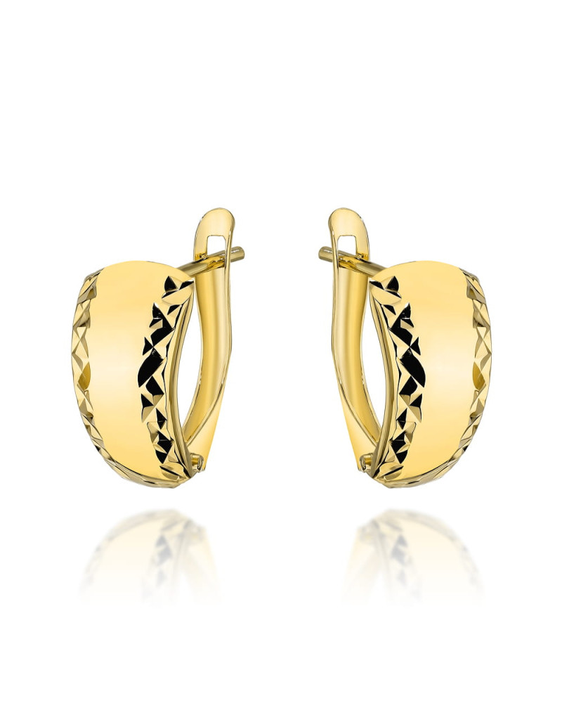 Kolczyki złote gładkie z diamentowanymi brzegami (Gramatura: 1.52)