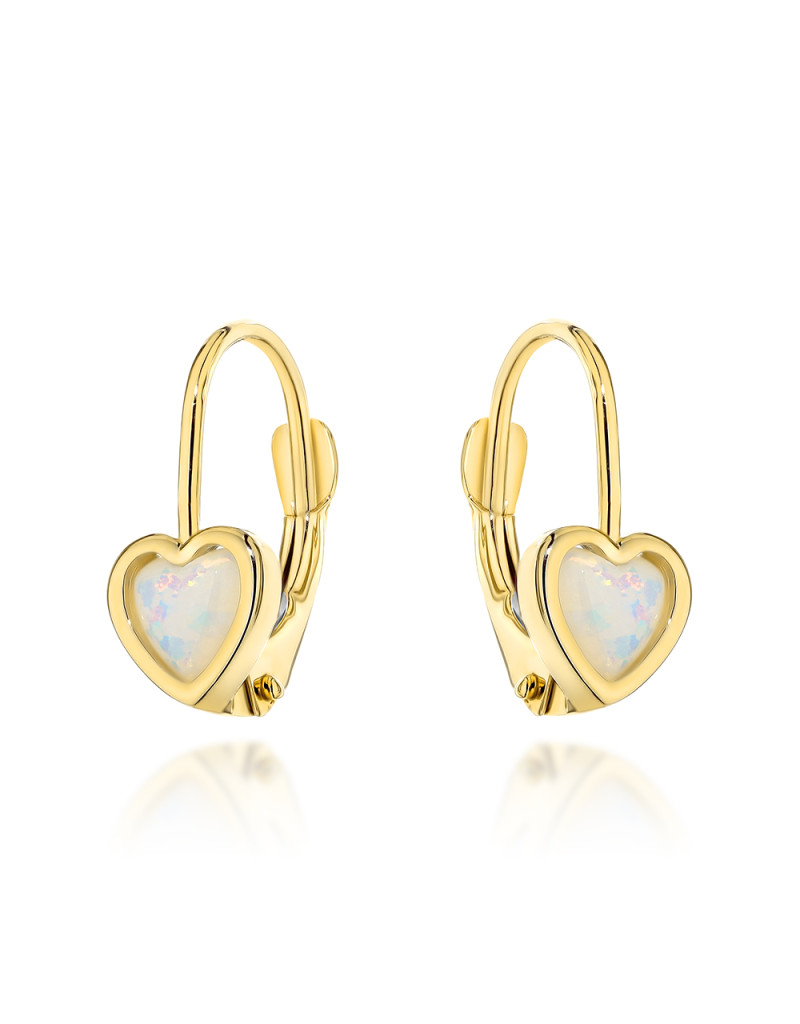 Kolczyki złote serduszka z opalitem na angielskim zapięciu (Gramatura: 1.29)
