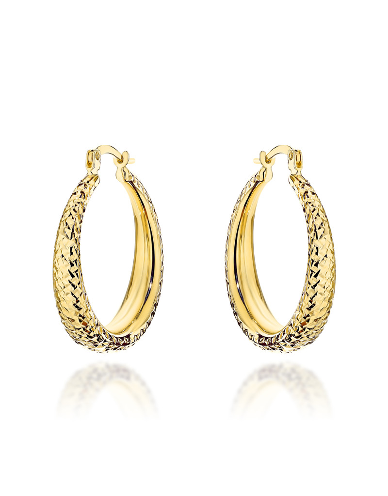 Kolczyki złote koła zdobione diamentowaniem z szeroką szyną (Gramatura: 2.95)