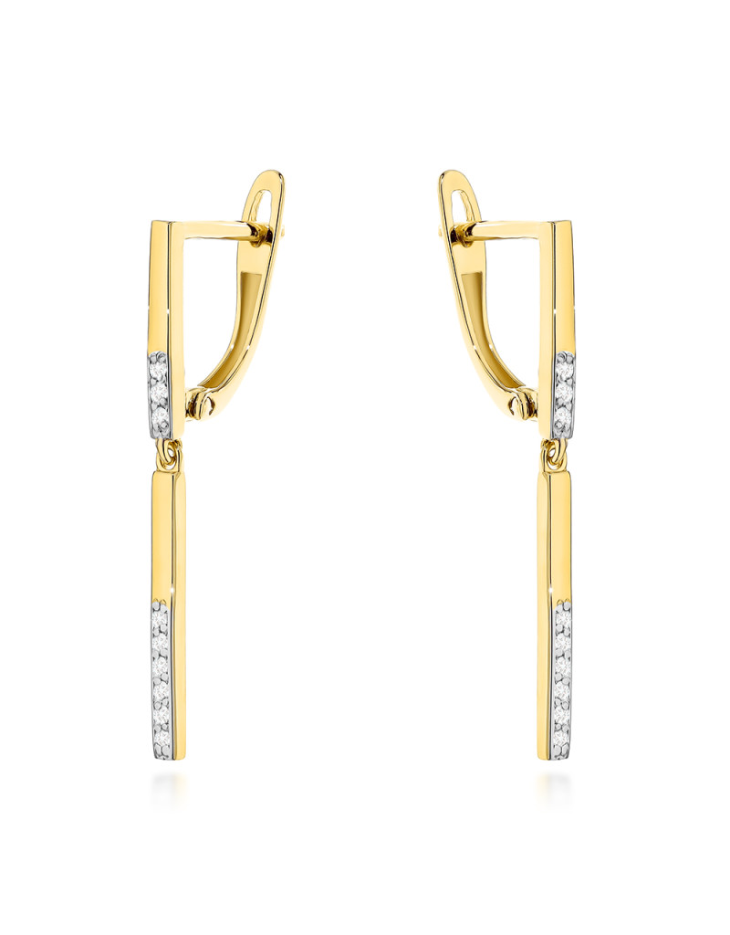 Kolczyki złote pręcik z cyrkoniami na angielskim zapięciu (Gramatura: 1.99)