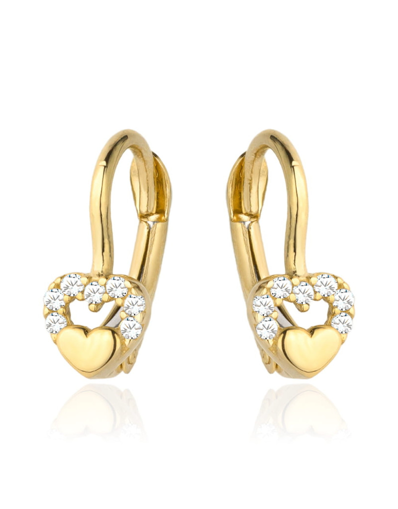 Kolczyki złote wypukłe serduszko w sercu z cyrkonii (Gramatura: 1.20)
