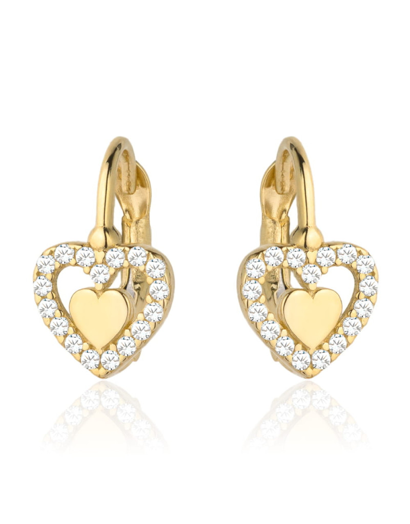 Kolczyki złote serduszko w sercu wysadzanym cyrkoniami (Gramatura: 1.42)