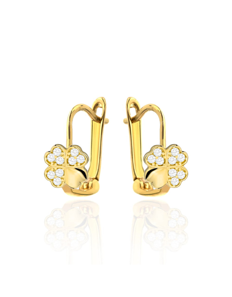 Kolczyki złote koniczynka z cyrkoniami na angielskim zapięciu (Gramatura: 0.94)