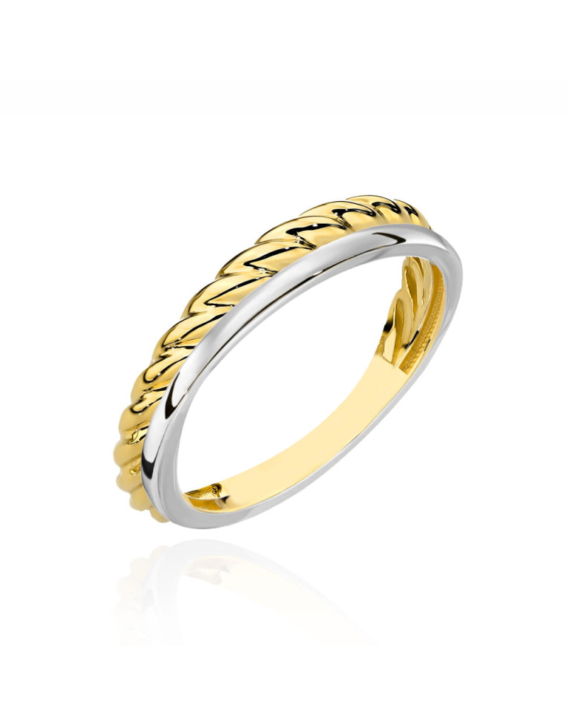 Pierścionek złoty podwójny pleciony w dwóch kolorach złota (Rozmiar pr. 585: 13 Gramatura: 1.18)