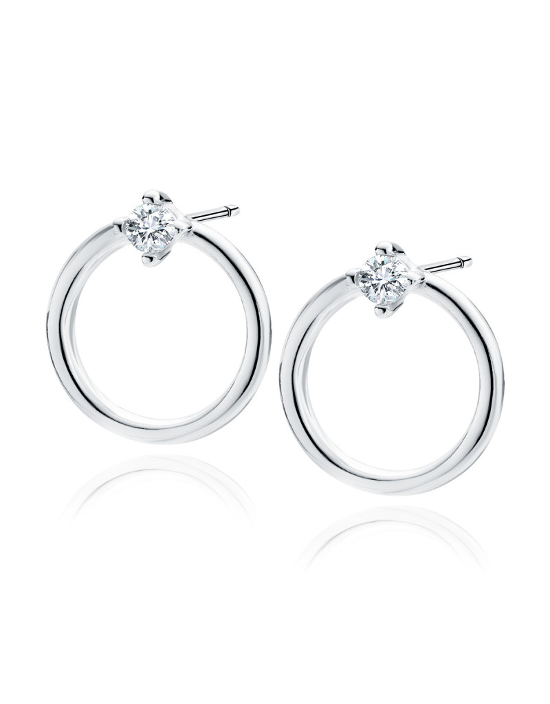 Piękne srebrne kolczyki okręgi o unikalnym kształcie, zdobione cyrkoniami.