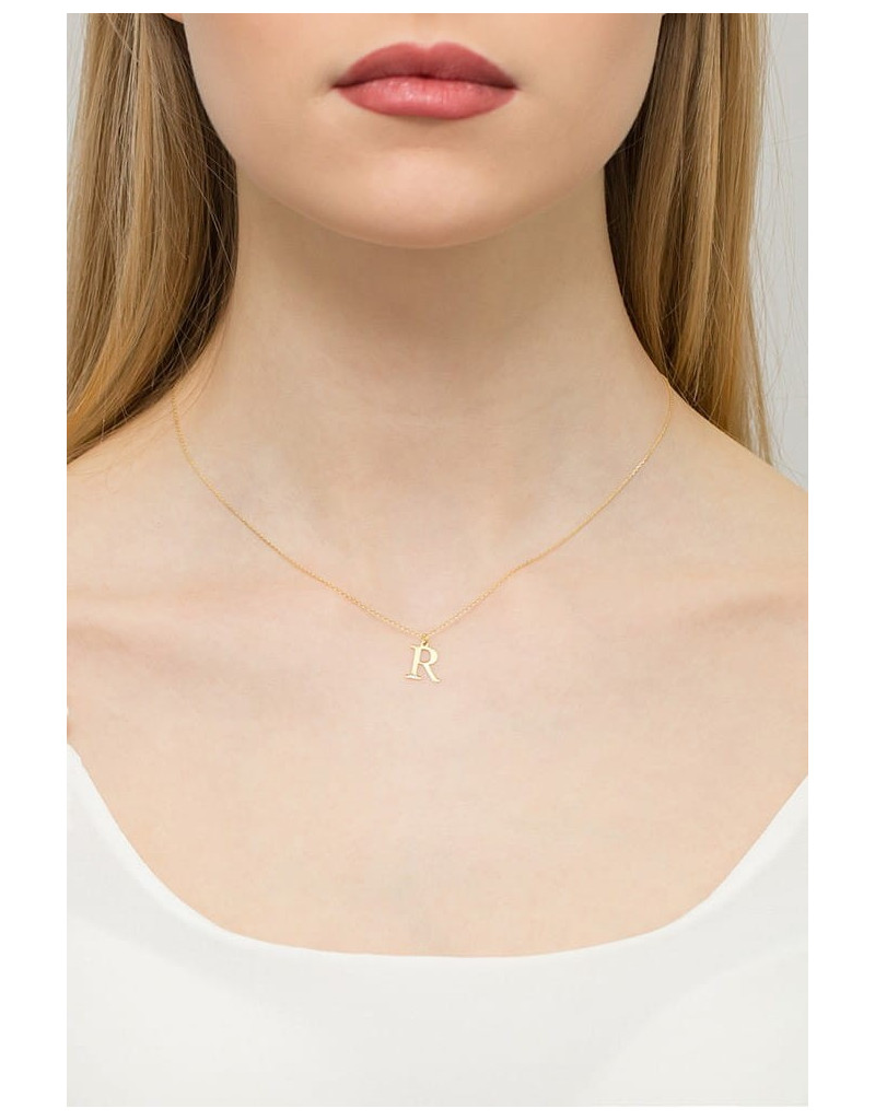 Naszyjnik N0069 z diamentami - literka R - żółte złoto