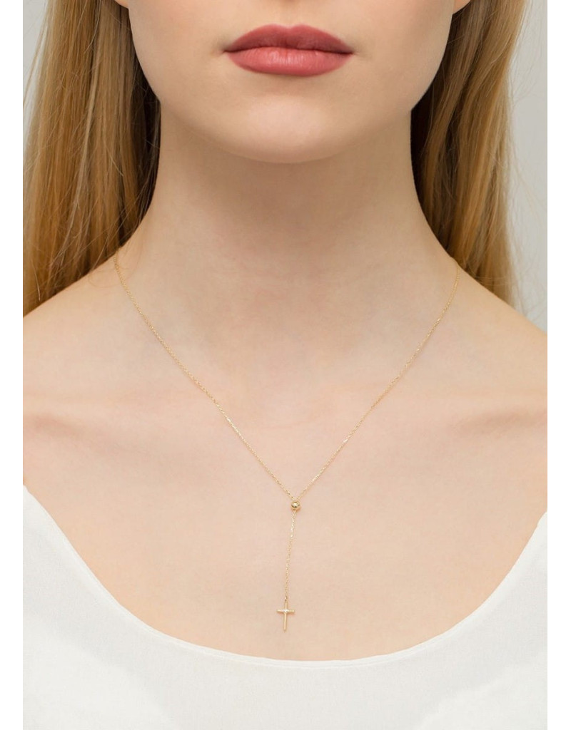 Złoty naszyjnik z brylantami N0065 - krzyżyk