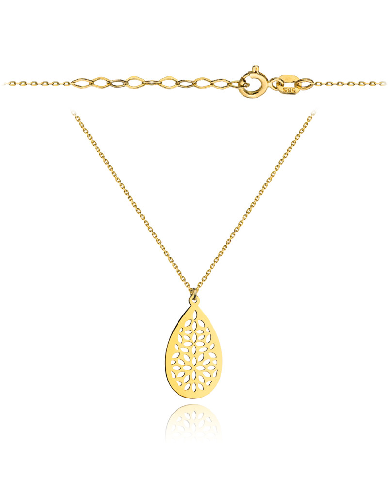 Naszyjnik złoty owal z delikatnym kwiatkowym wzorem (Gramatura: 1.32)