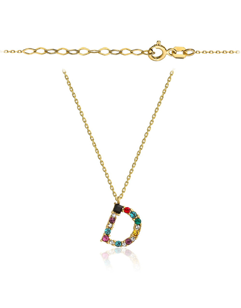 Naszyjnik złoty litera D z kolorowymi kamieniami (Gramatura: 1.46)