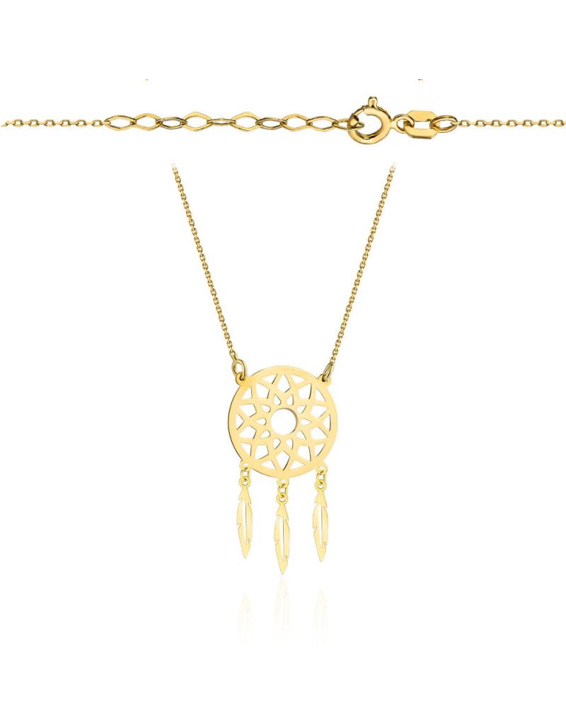 Naszyjnik złoty z wiszącym łapaczem snów (Gramatura: 0.99)