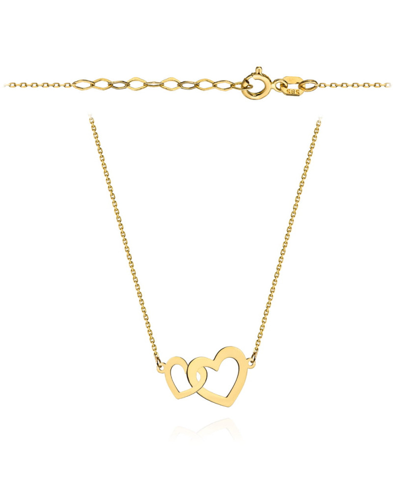 Dodaj odrobinę luksusu do swojej kolekcji biżuterii z naszym złotym naszyjnikiem dwa serca!