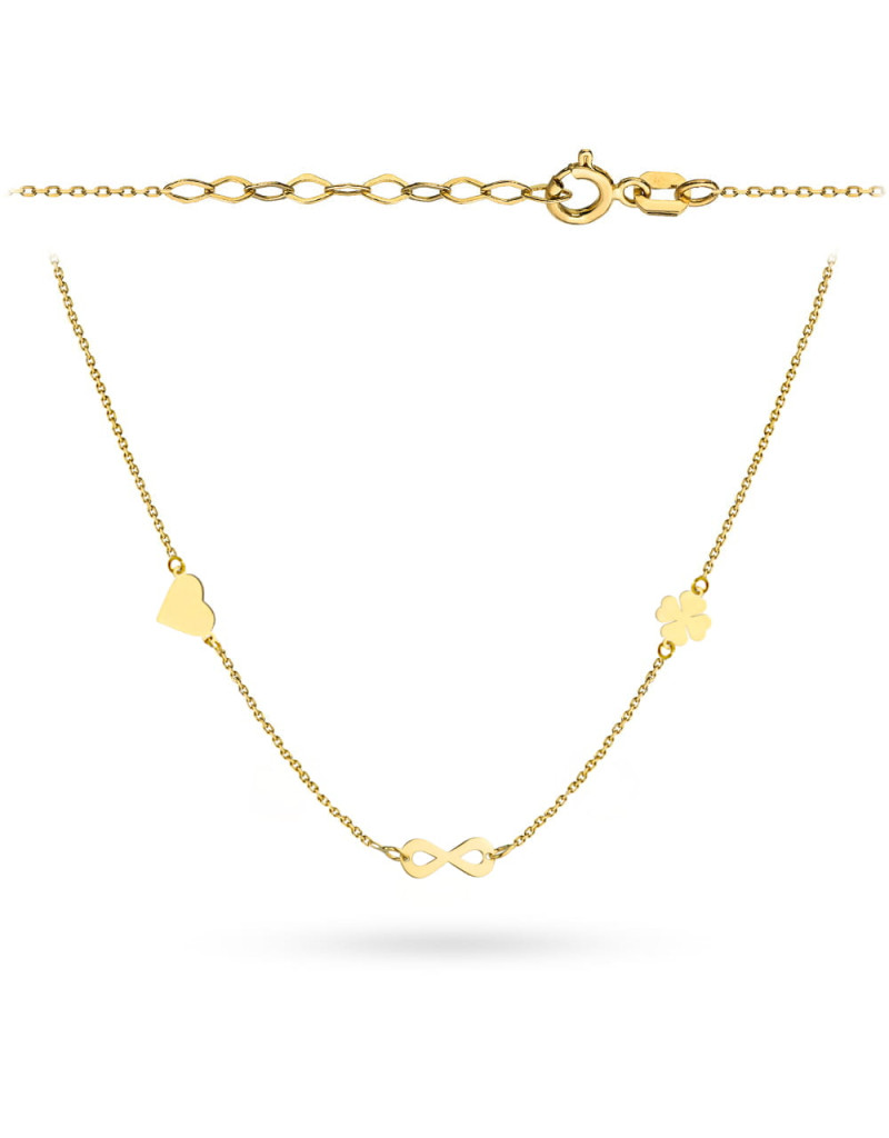 Naszyjnik złoty serce, nieskończoność, koniczynka super lekki