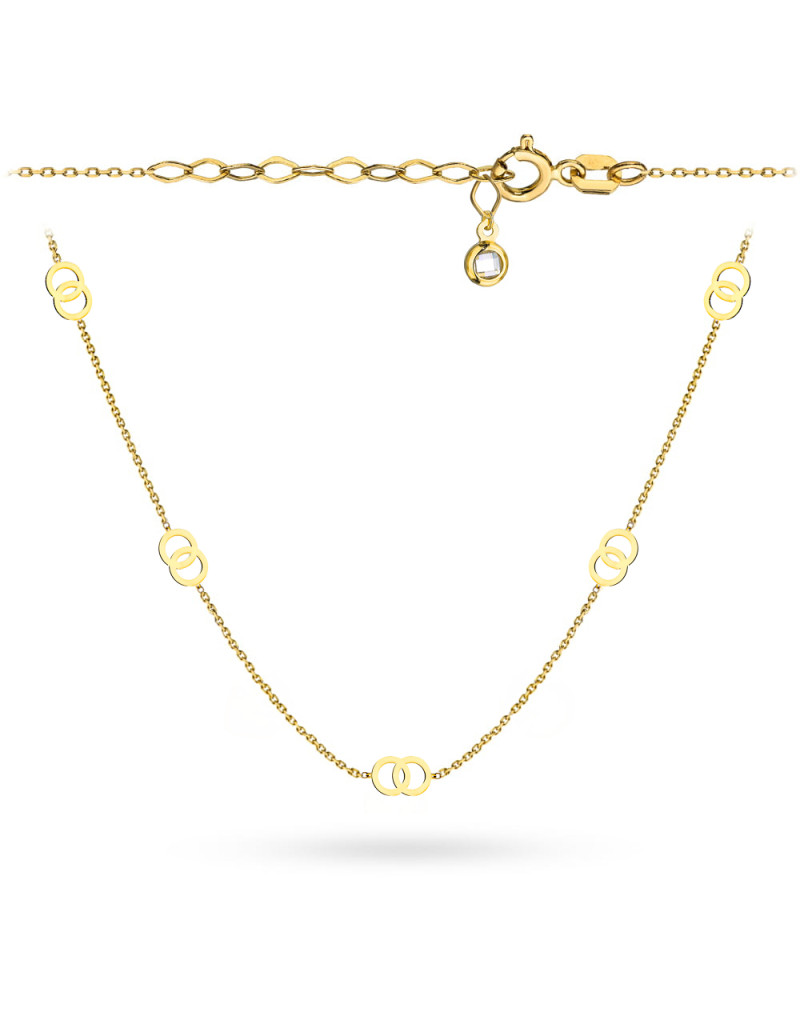 Odkryj elegancję i wyjątkowość naszego złotego naszyjnika ze splecionymi kółeczkami, który doda blasku każdej stylizacji. Wykonany z najwyższej jakości złota próby 585, ten naszyjnik to idealny wybór dla miłośników biżuterii, którzy cenią sobie zarówno precyzję wykonania, jak i niepowtarzalny design.