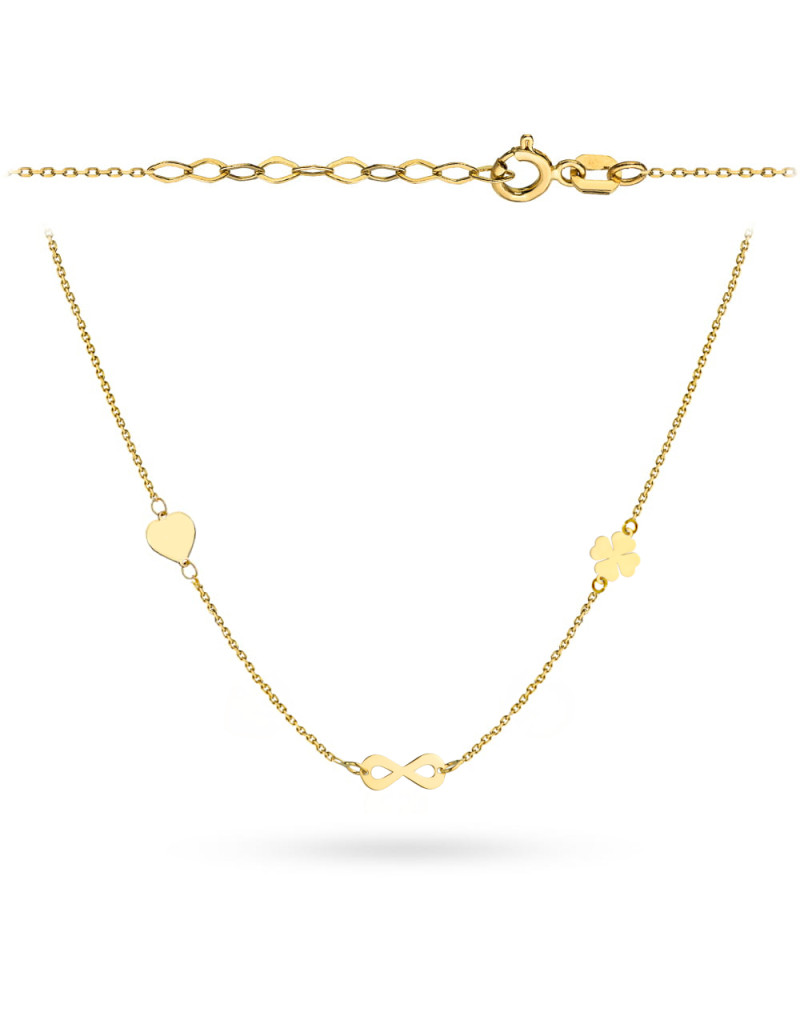 Naszyjnik złoty serce, nieskończoność, koniczynka super lekki (Gramatura: 0.91)