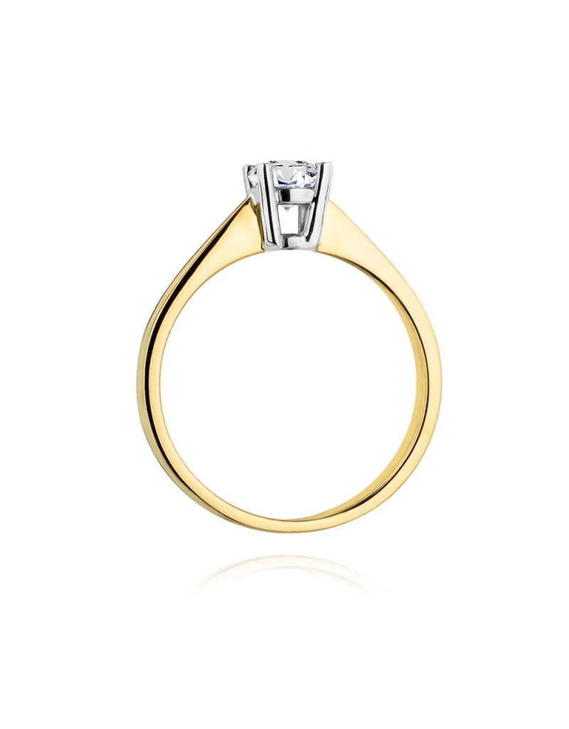 Uwodzicielski zloty pierścionek z krystalicznym brylantem w eleganckiej oprawie.