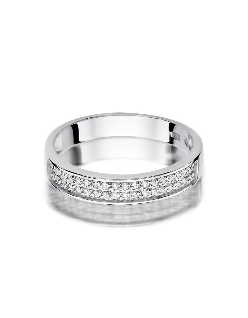 Olśniewający złoty pierścionek w formie obrączki z 36 brylantami, które podkreślają jego blask.