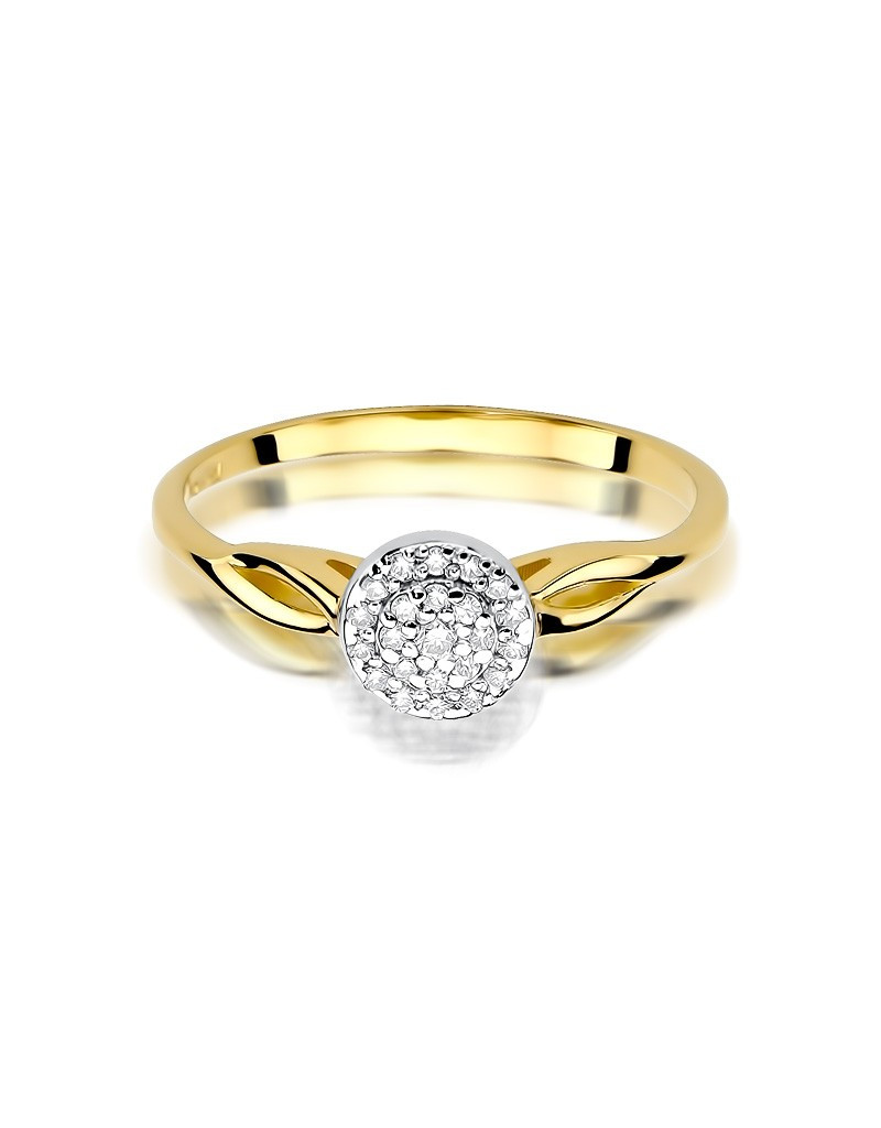 Pierścionek z brylantami w żółtym złocie, niepowtarzalny wzór, idealnie pasuje na delikatną kobiecą dłoń.