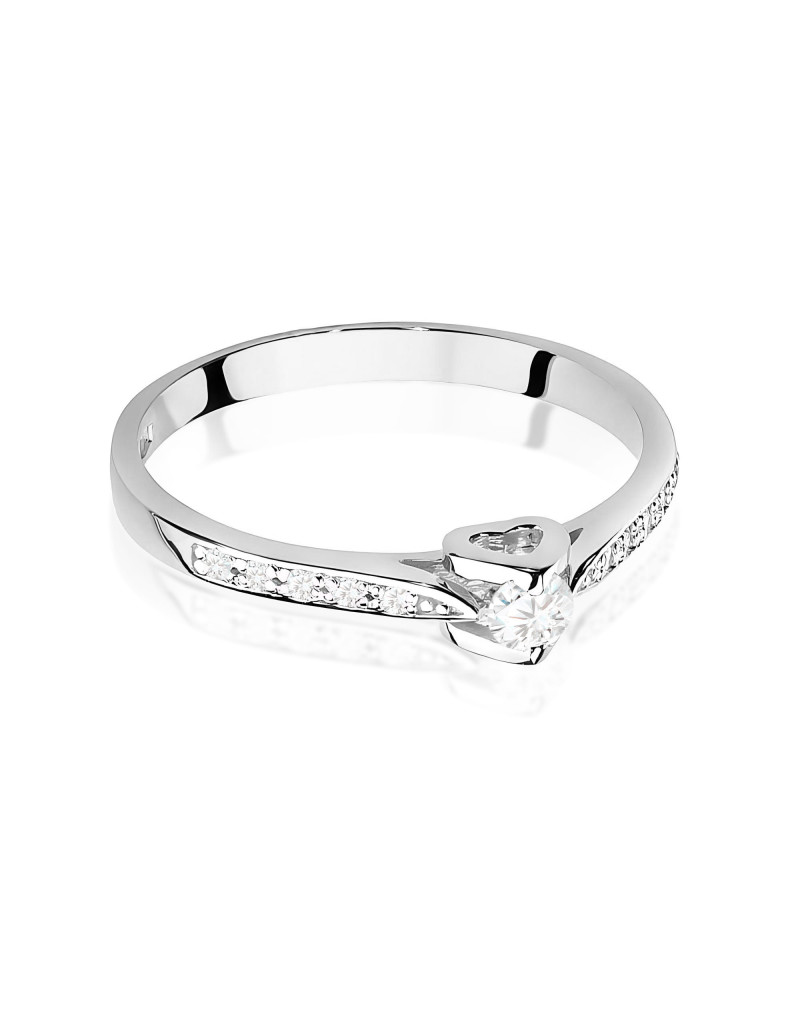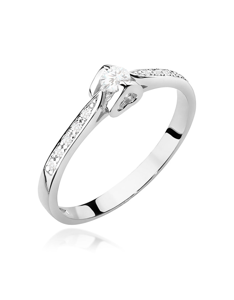 Nowoczesny pierścionek w oryginalnym stylu w białym złocie, które podkreśla olśniewający brylant.