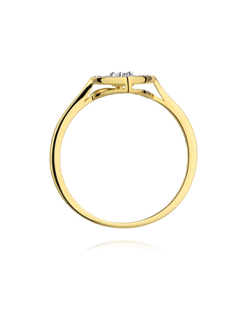 Pierścionek w kształcie serduszka z brylantami w żółtym złocie, niepowtarzalny wzór, idealnie pasuje na delikatną kobiecą dłoń. Najlepszy prezent dla drugiej połówki.
