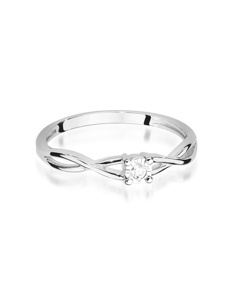 Klasyczny, ponadczasowy model pierścionka wykonany z białęgo złota, z głównym kamieniem jakim jest brylant o wielkości kamienia 0,03ct.