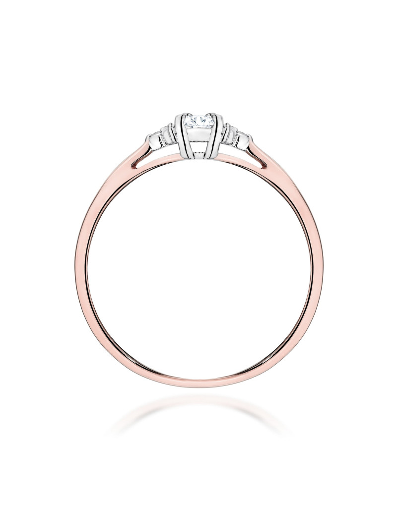 Pierścionek z brylantami w różowym złocie, niepowtarzalny wzór, idealnie pasuje na delikatną kobiecą dłoń.