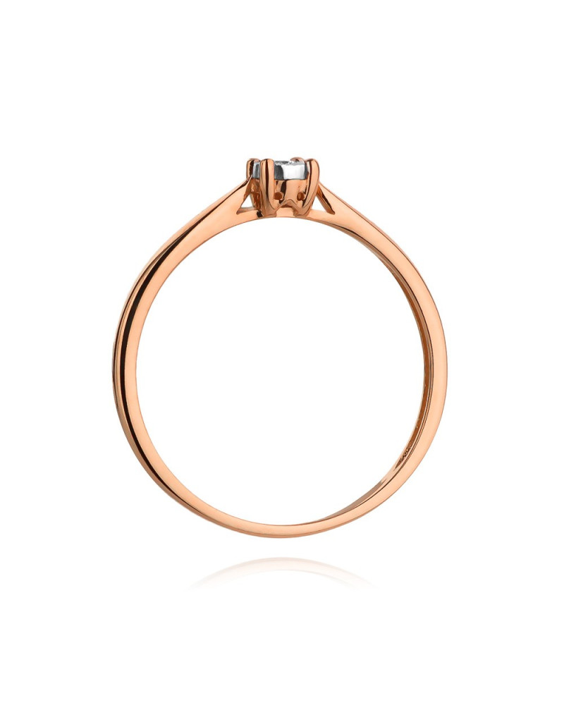 Klasyczny, ponadczasowy model pierścionka wykonany z różowego złota, z głównym kamieniem jakim jest brylant o wielkości kamienia 0,03ct.