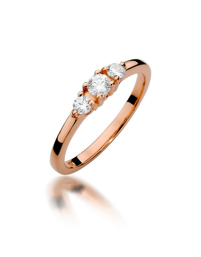 Krystaliczn0a forma pierścionek z różowego złota z 3 brylantami, które podkreślają jego unikalność.