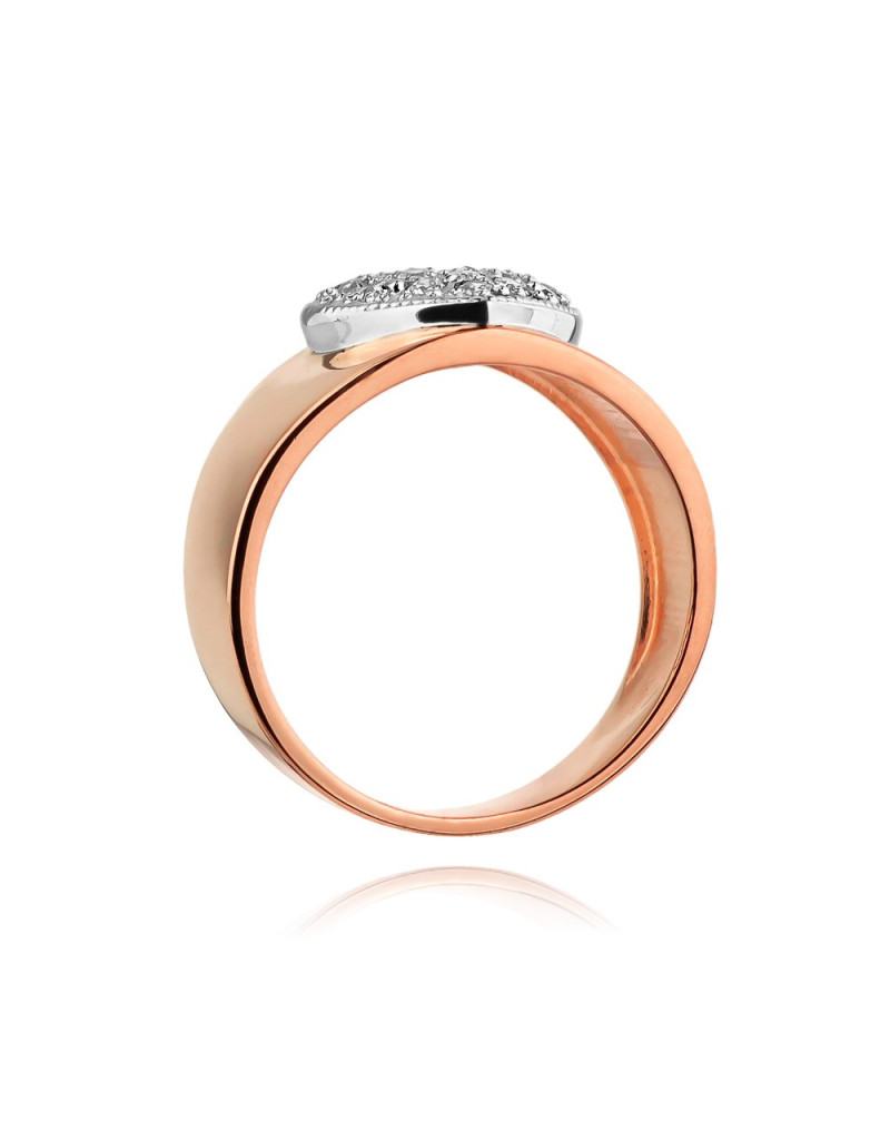 Romantyczny złoty pierścionek z urzekającą brylantową oprawą w kształcie serca w nowoczesnym stylu.
