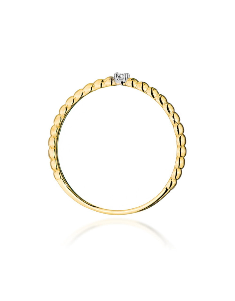 Pierścionek z brylantami w żółtym złocie, niepowtarzalny i nowoczesny wzór, idealnie pasuje na delikatną kobiecą dłoń.