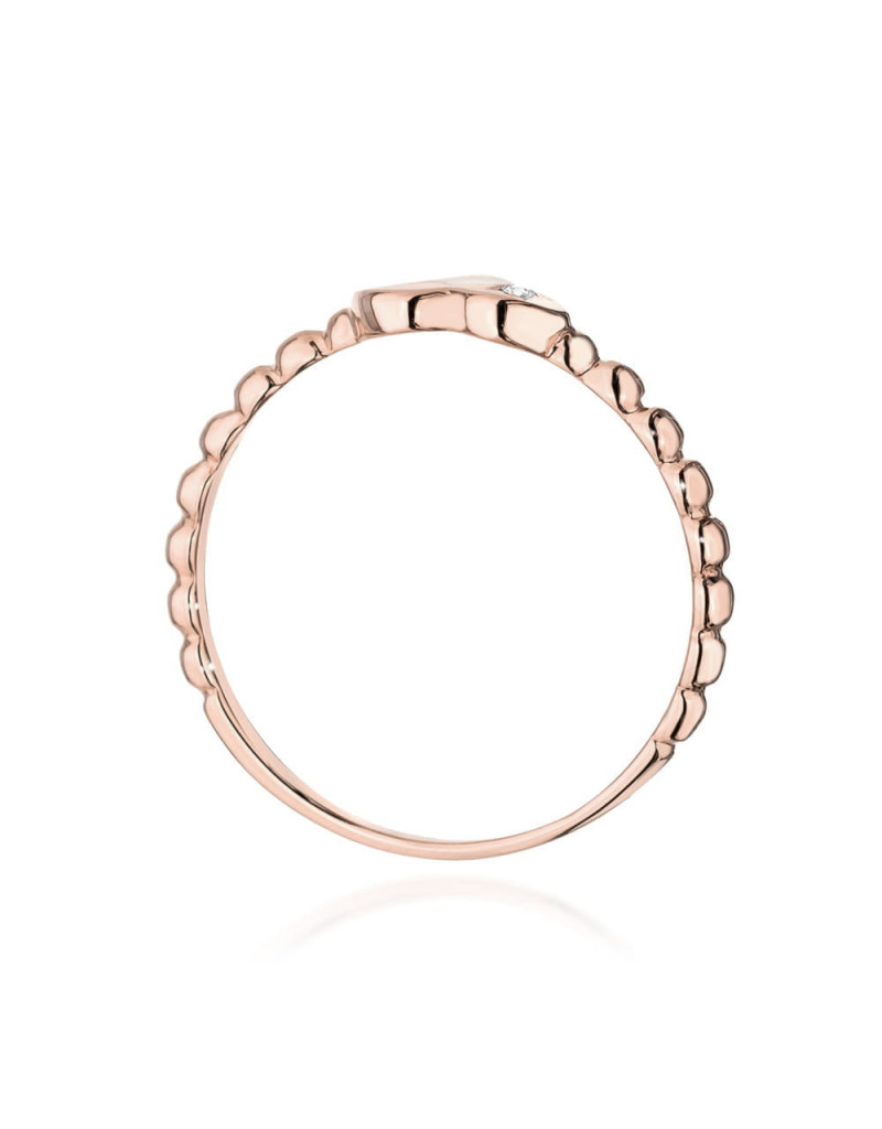 Pierścionek z brylantami w różowym złocie, niepowtarzalny obrączkowy wzór, idealnie pasuje na delikatną kobiecą dłoń.