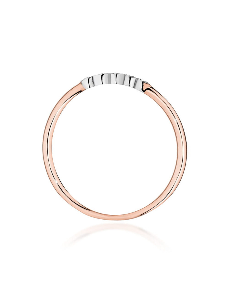 Pierścionek z brylantami w różówym złocie, niepowtarzalny obrączkowy wzór, idealnie pasuje na delikatną kobiecą dłoń.
