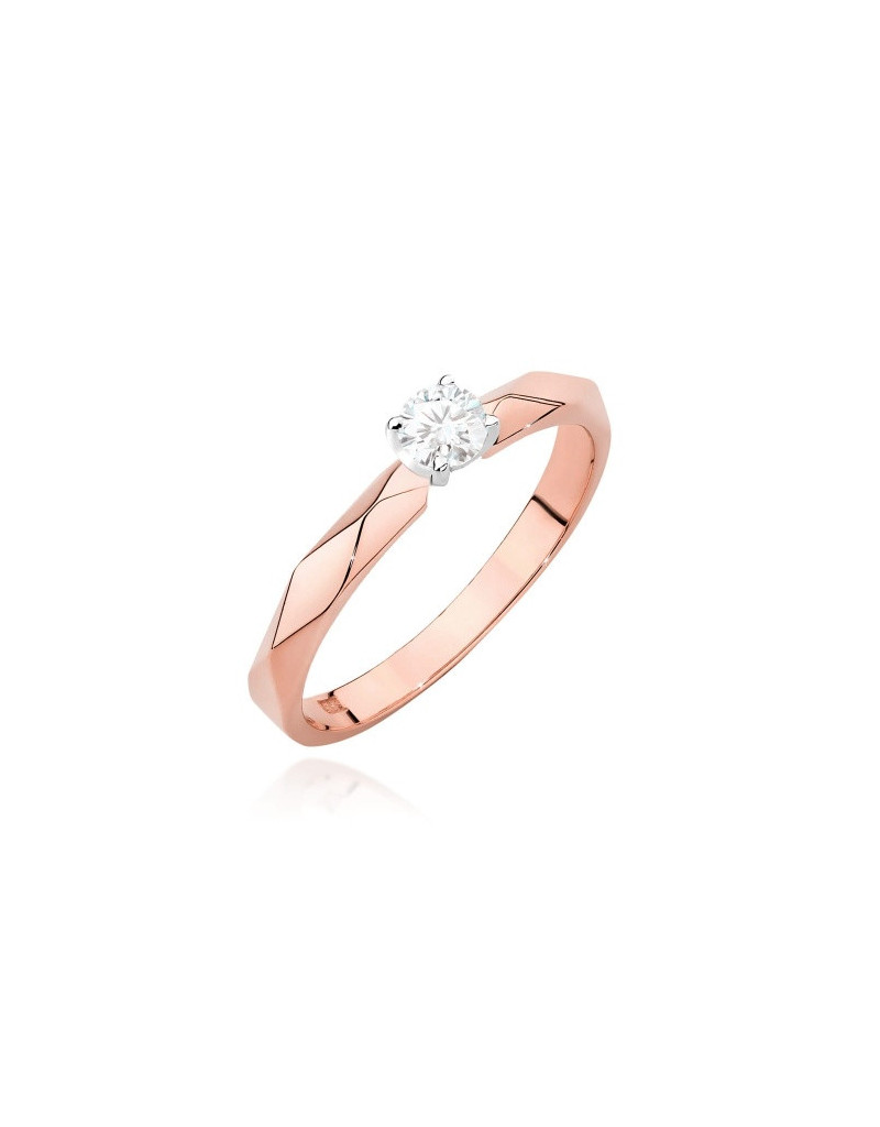 Pierścionek z brylantami w różowym złocie, niepowtarzalny i nowoczesny wzór, idealnie pasuje na delikatną kobiecą dłoń.