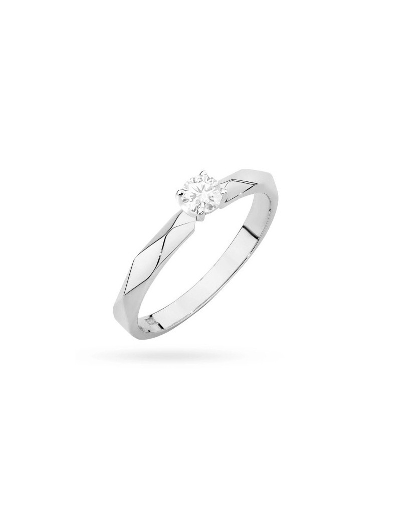 Pierścionek z brylantami w białym złocie, niepowtarzalny i nowoczesny wzór, idealnie pasuje na delikatną kobiecą dłoń.