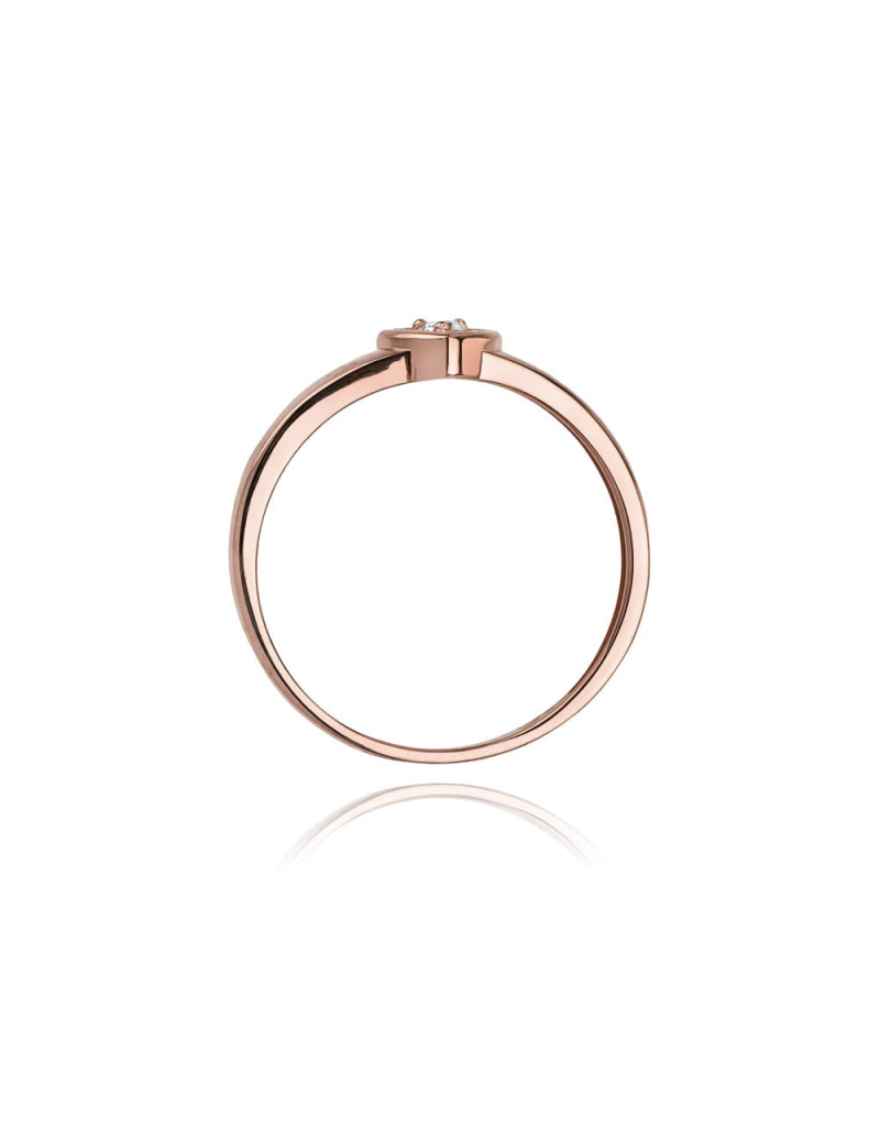 Pierścionek z różowego złota w przepięknej oprawie w kształcie serca z brylantem w środku.