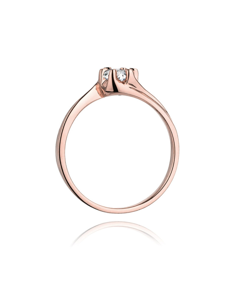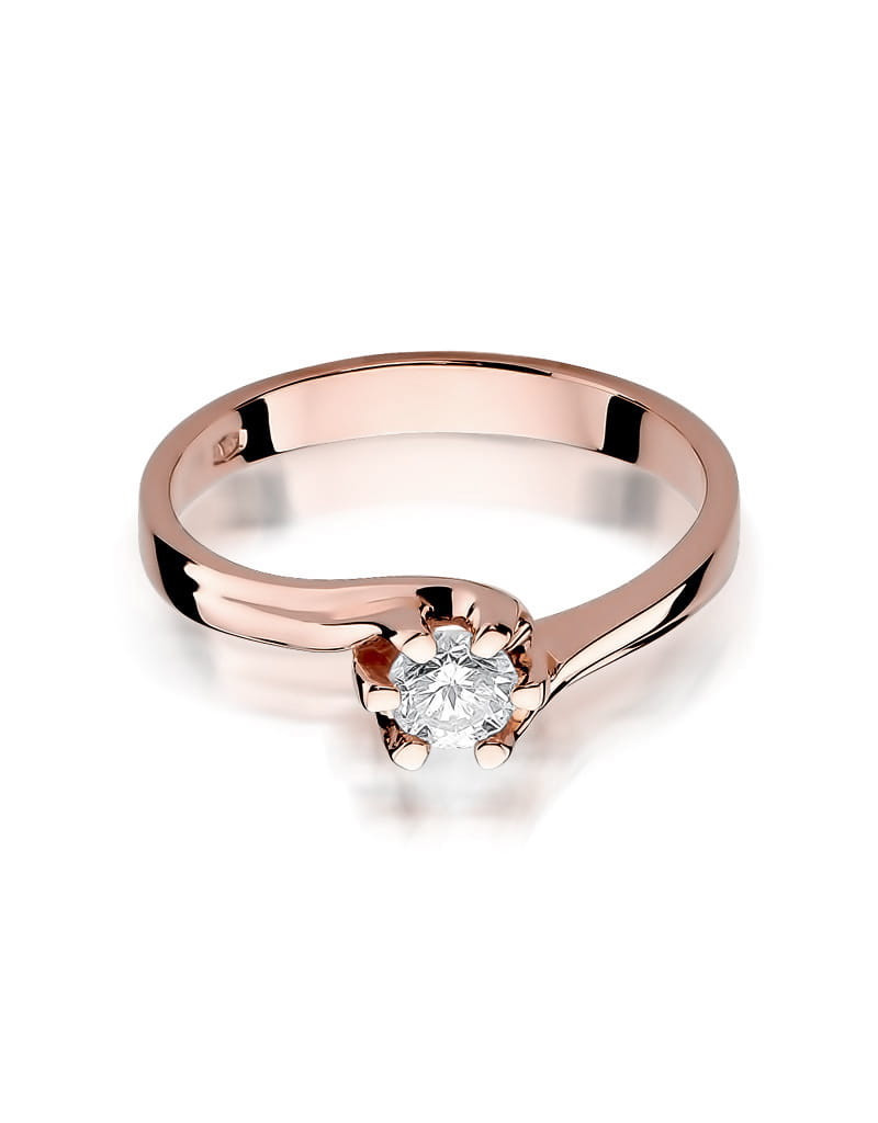 Luksusowy pierścionek w eleganckiej oprawie z olśniewającym brylantem w sześcioramiennej koronie. Wykonany z różowego złota.