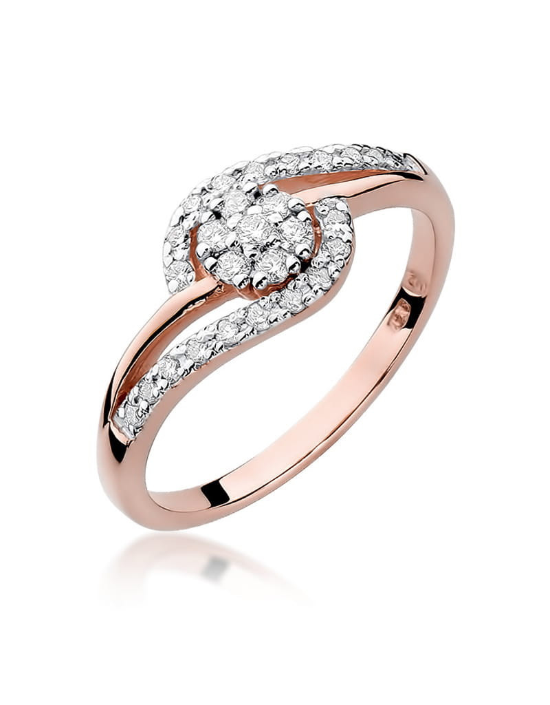 Olśniewający złoty pierścionek z fantazyjną oprawą otuloną brylantami.