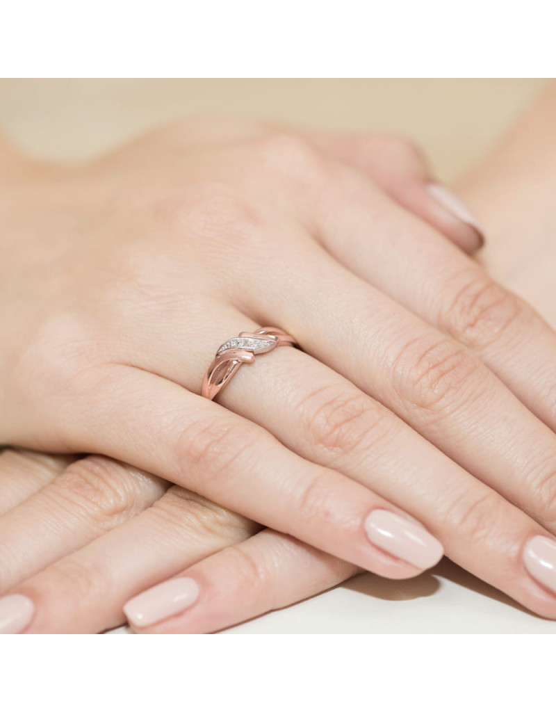 Subtelny pierścionek z różowego i białego złota z brylantami w delikatnej oprawie.