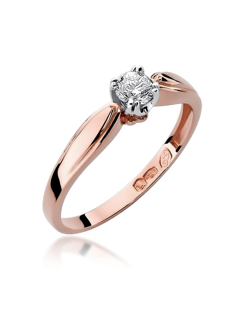 Klasyczna elegancja pierścionka z różowego złota, z przepięknym brylantem w czteroramiennej koronie z białego złota.