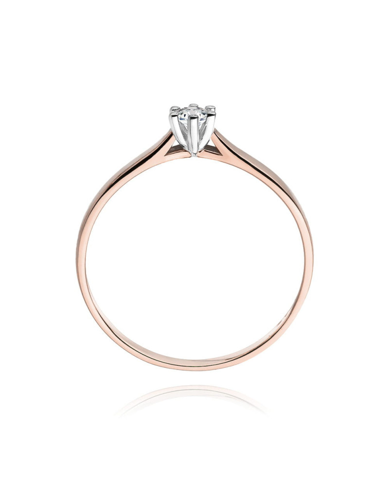 Romantyczny pierścionek z różowy i białego złota w klasycznej oprawie z zachwycającym brylantem w sześcioramiennej koronie.